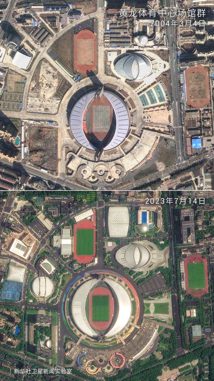↑这是卫星拍摄的黄龙体育中心场馆群
