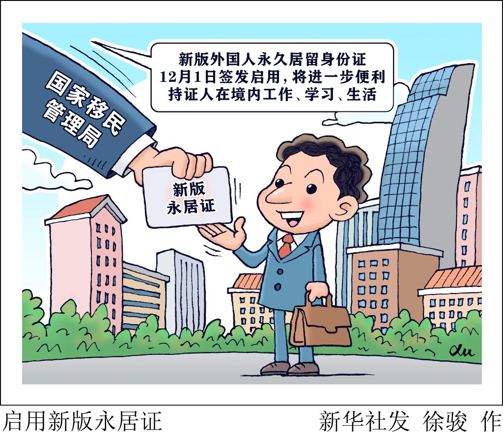 新华社北京9月15日电(记者任沁沁)国家移民管理局15日在京召开新闻发布会,宣布将于今年12月1日起正式签发启用新版中华人民共和国外国人永久居留身份证(以下简称“永居证”),同时发布新版永居证式样。新版永居证启用后,现版永居证在有效期内仍可继续使用,持证人可根据个人需要,适时申请换发新版永居证。