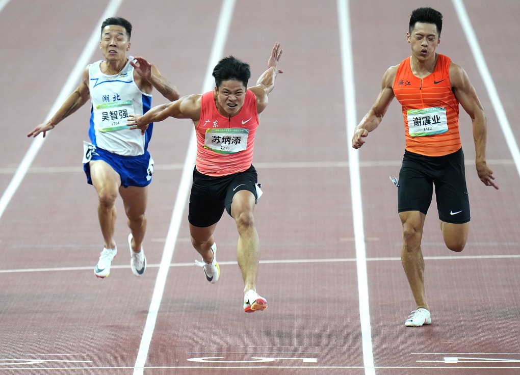 苏炳添在西安奥体中心体育场夺得全运会男子100米冠军