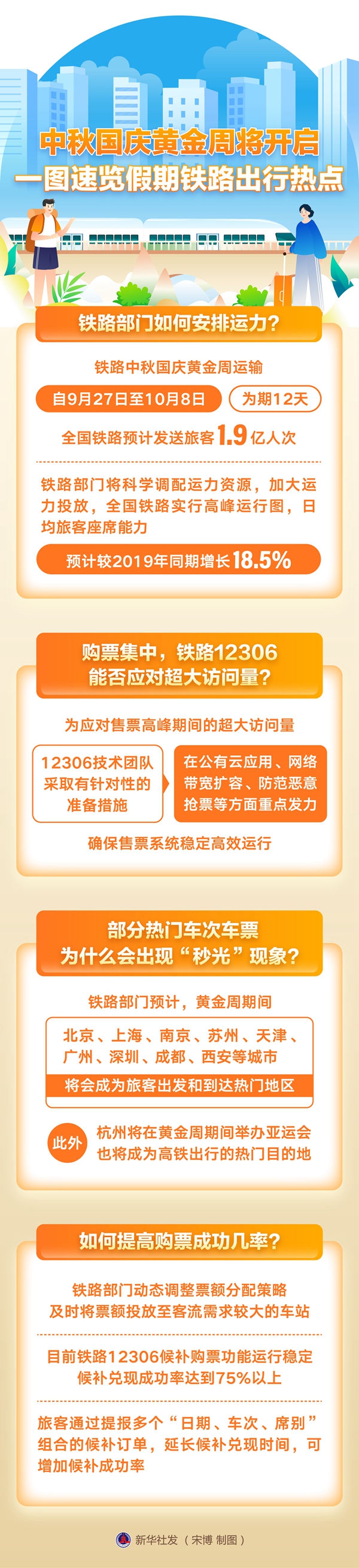 新华社北京9月15日电 题:中秋国庆黄金周将开启 一文速览假期铁路出行热点