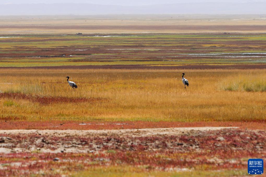 9月14日在阿尔金山国家级自然保护区拍摄的黑颈鹤。