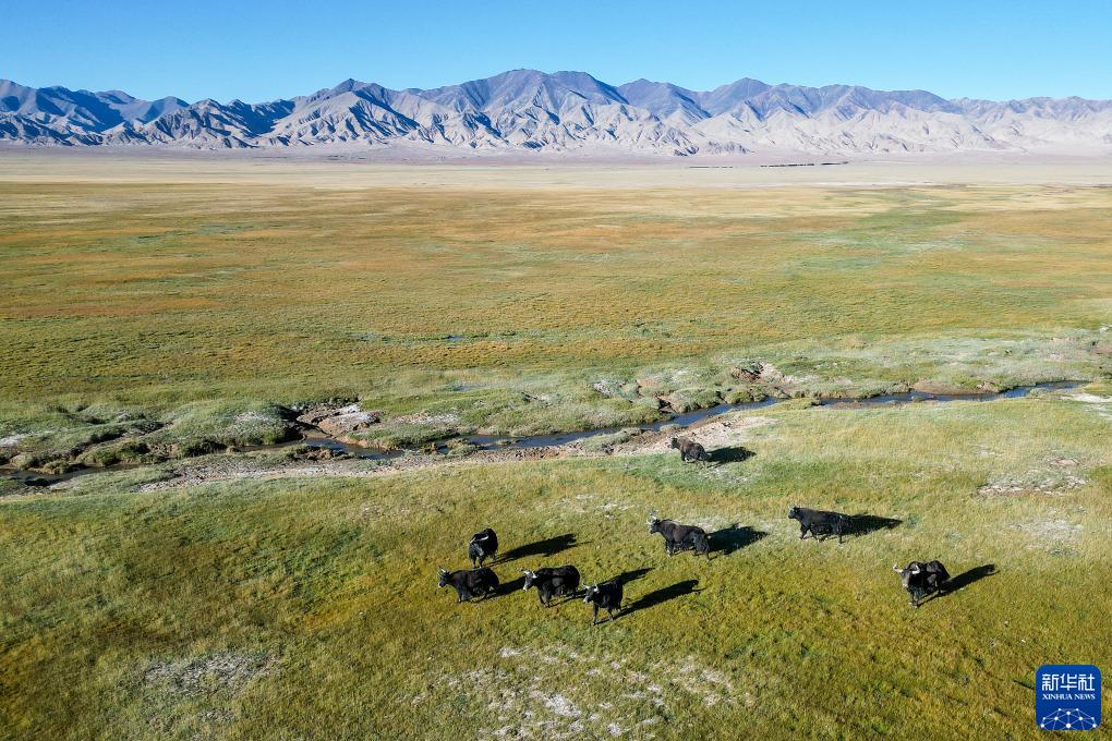 9月12日在阿尔金山国家级自然保护区拍摄的野牦牛(无人机照片)。