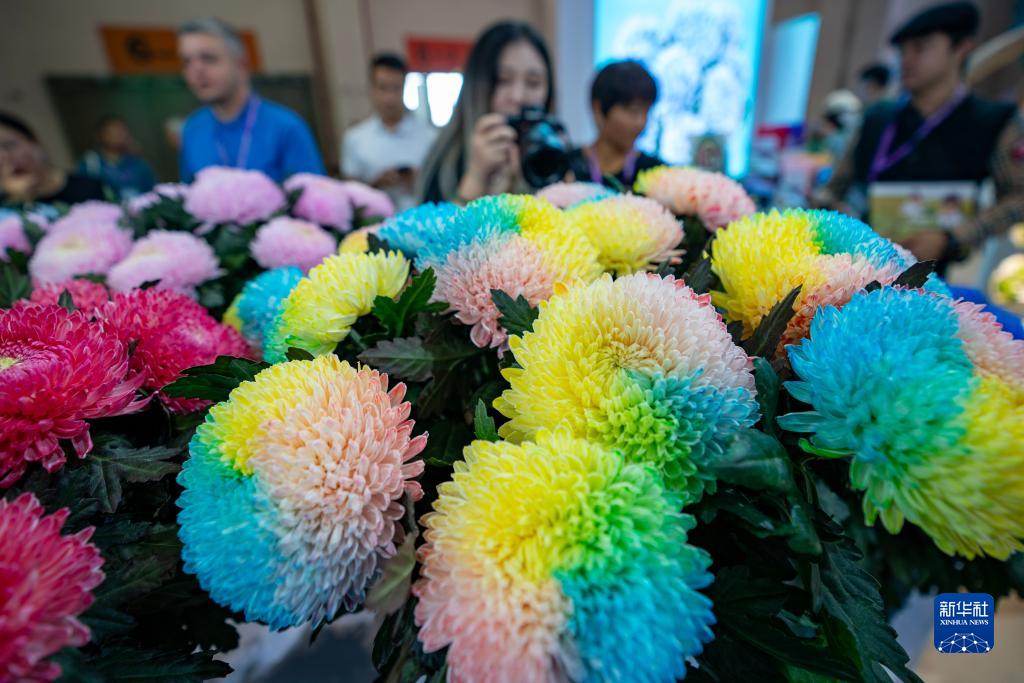 这是9月15日在第二十一届中国昆明国际花卉展上拍摄的“七彩云菊”。
