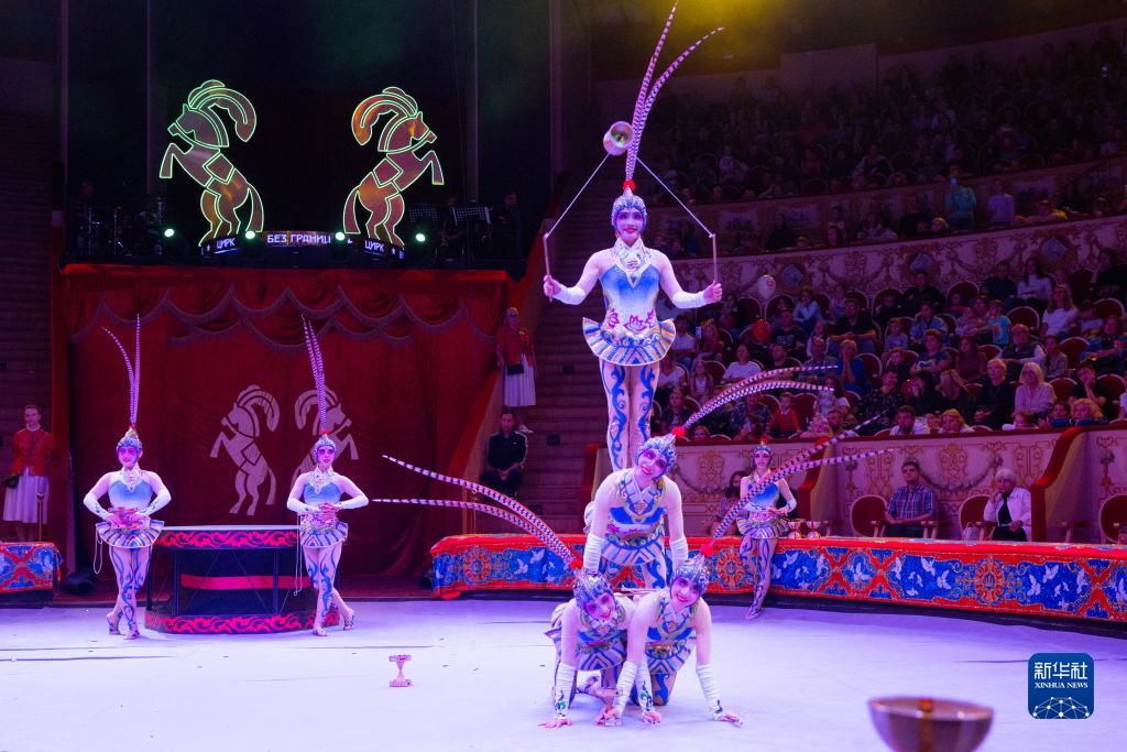 9月14日,中国演员在俄罗斯圣彼得堡举行的第二届“无国界”国际马戏艺术节上表演抖空竹节目。