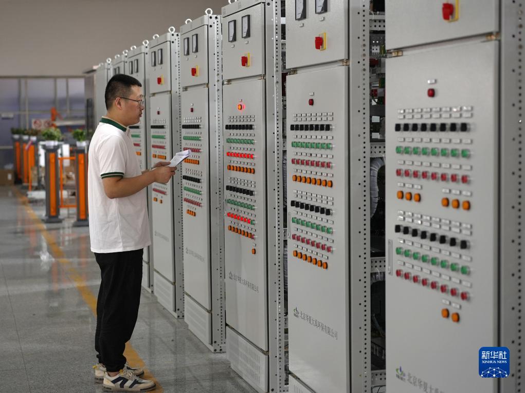 9月15日,在河北中电信普智能科技有限公司生产车间,质检人员对配电柜成品进行出厂前检测。