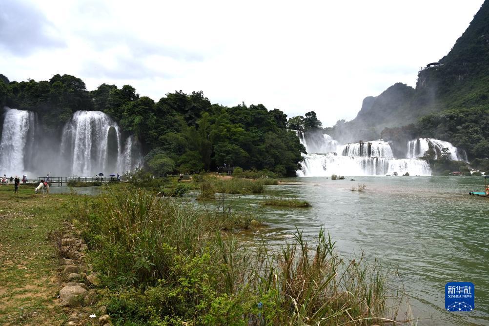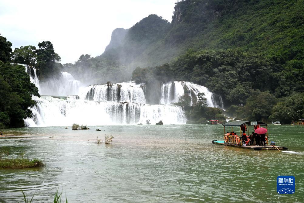 9月15日,游客在中越德天(板约)瀑布跨境旅游合作区游玩。新华社记者 曹祎铭 摄