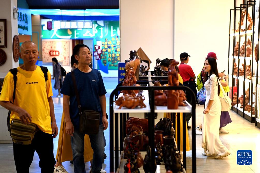 9月15日,游客在中越德天(板约)瀑布跨境旅游合作区内挑选商品。新华社记者 曹祎铭 摄