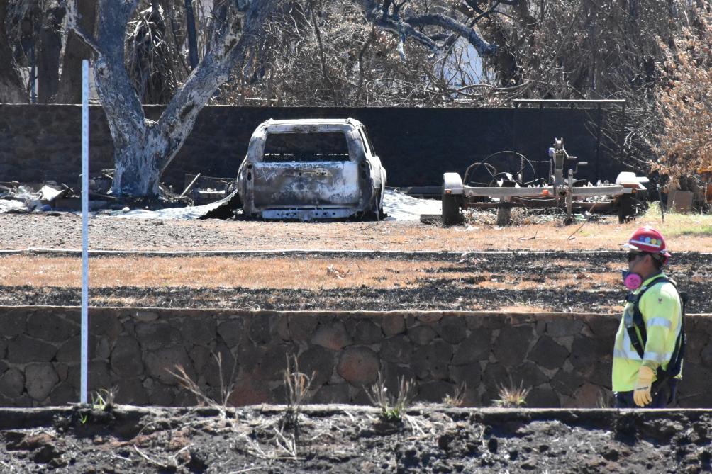 8月22日,工作人员在美国夏威夷州拉海纳镇进行修复工作。新华社记者高山摄