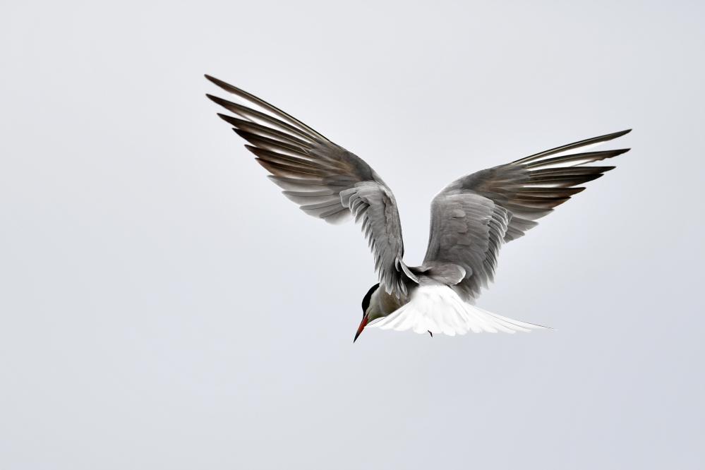 一只燕鸥在甘肃尕海则岔国家级自然保护区的尕海湿地上飞翔。 新华社记者 陈斌 摄
