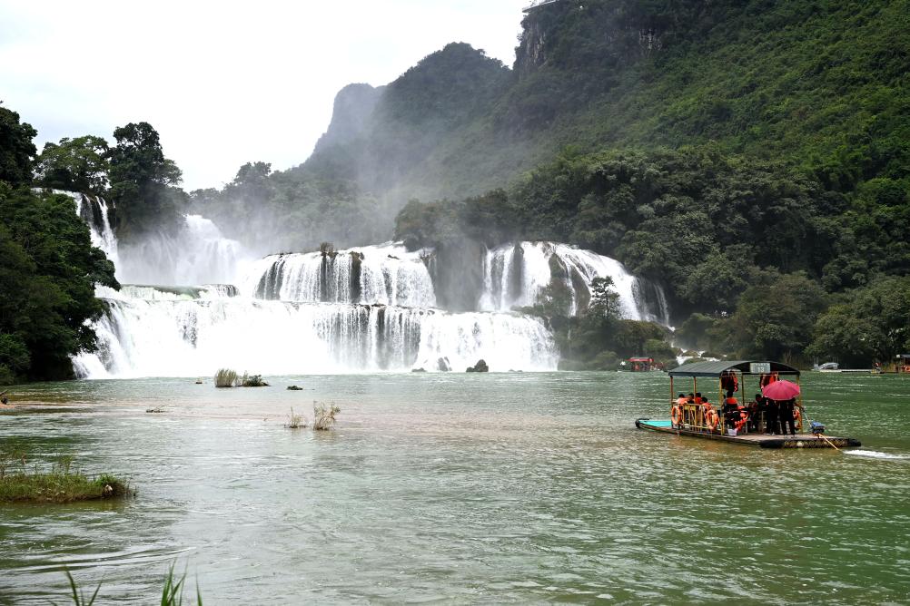 9月15日,游客在中越德天(板约)瀑布跨境旅游合作区游玩。新华社记者 曹祎铭 摄