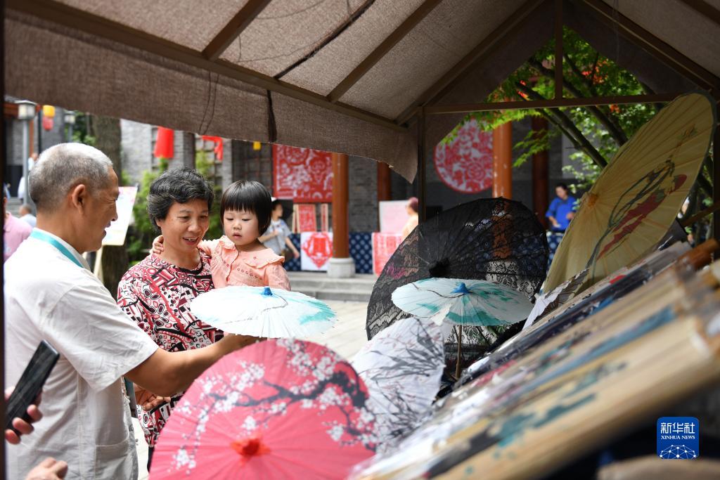 9月16日,在郴州长卷文旅城,游客在选购商品。新华社记者 陈振海 摄