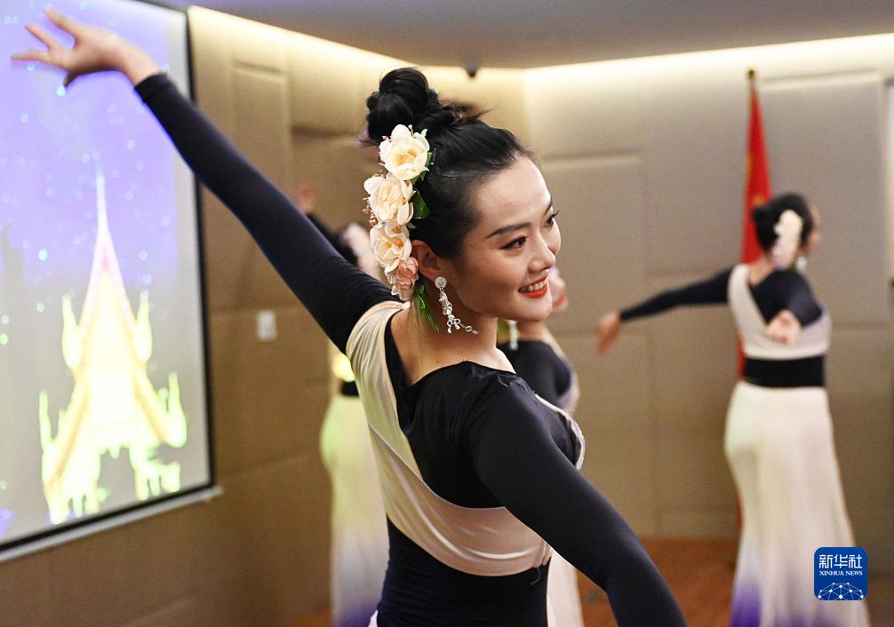 9月17日,演员在科威特哈瓦利省科威特中国文化中心的试运营仪式上表演中国民族舞蹈。新华社发(阿萨德 摄)