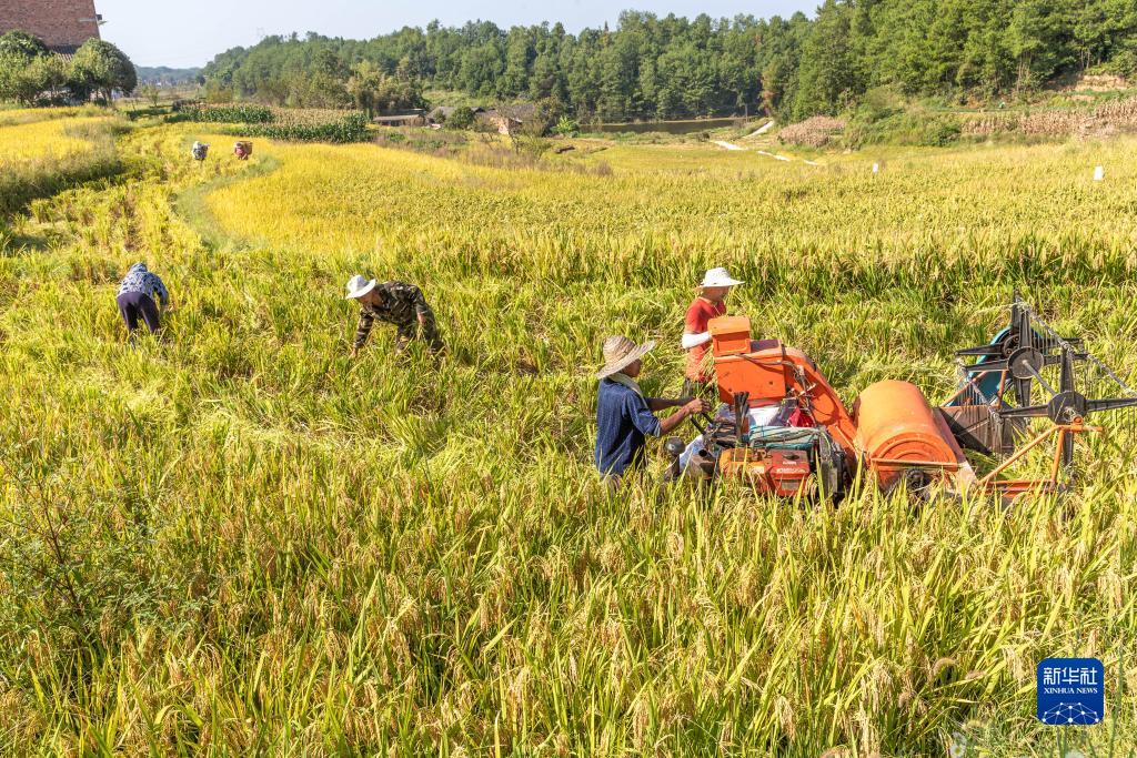 9月17日,重庆市南川区福寿镇大石坝村村民在收割“定制水稻”。