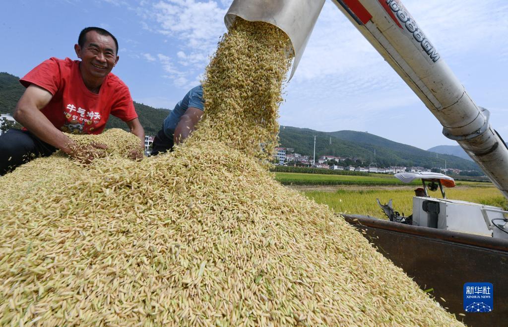 9月17日,湖北省襄阳市保康县马桥镇中坪村冷水稻丰收,农民喜笑颜开。