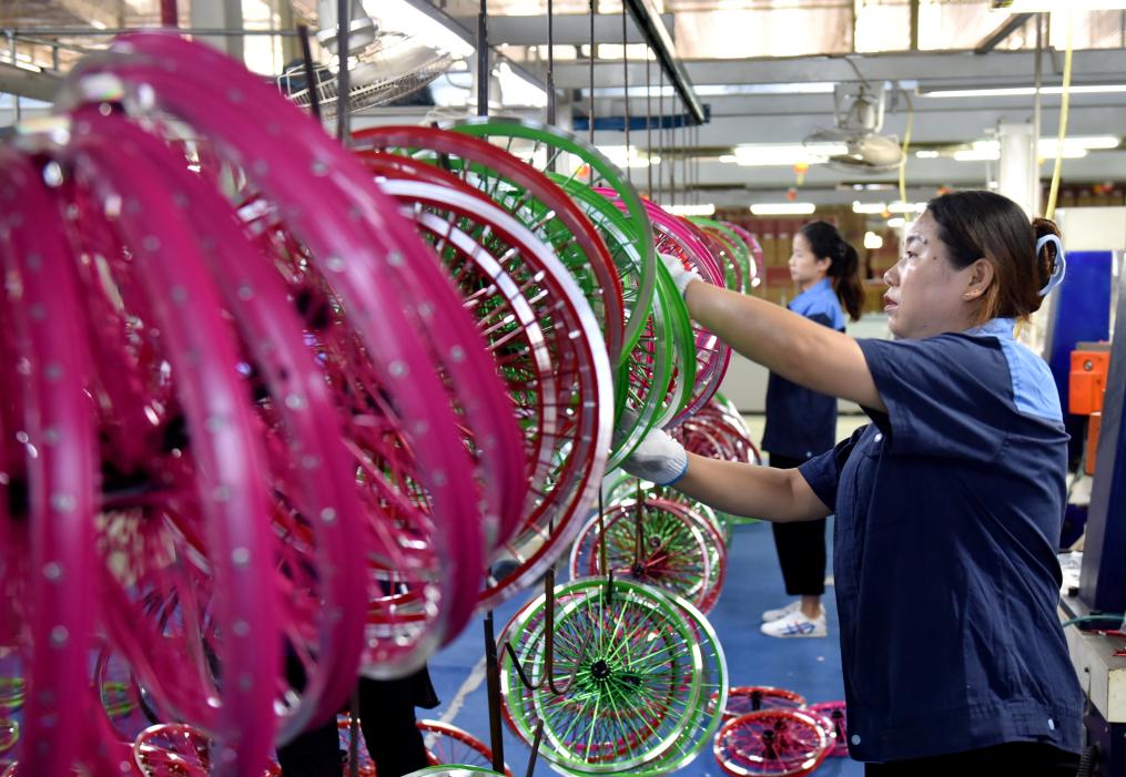 9月17日,在郑州北站编组场,中欧班列(郑州)整备班组的货车检车员在检查车辆轮对技术状态。