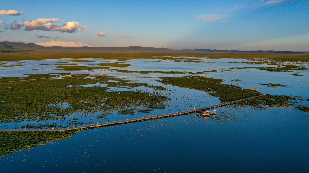 除了治沙,生态治理的另一个重点是湿地保护。据阿坝州水务局总工程师龚智成介绍,以若尔盖湿地为代表的川西北湿地,流入黄河的水占黄河全流域多年平均径流量的8.8%。因气候变化、历史上为发展畜牧业“开沟排水”“向湿地要草地”等不当做法,湿地一度退化严重。若尔盖湿地最大的湖泊花湖,曾一度萎缩至215公顷。