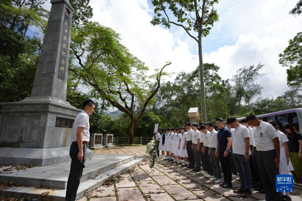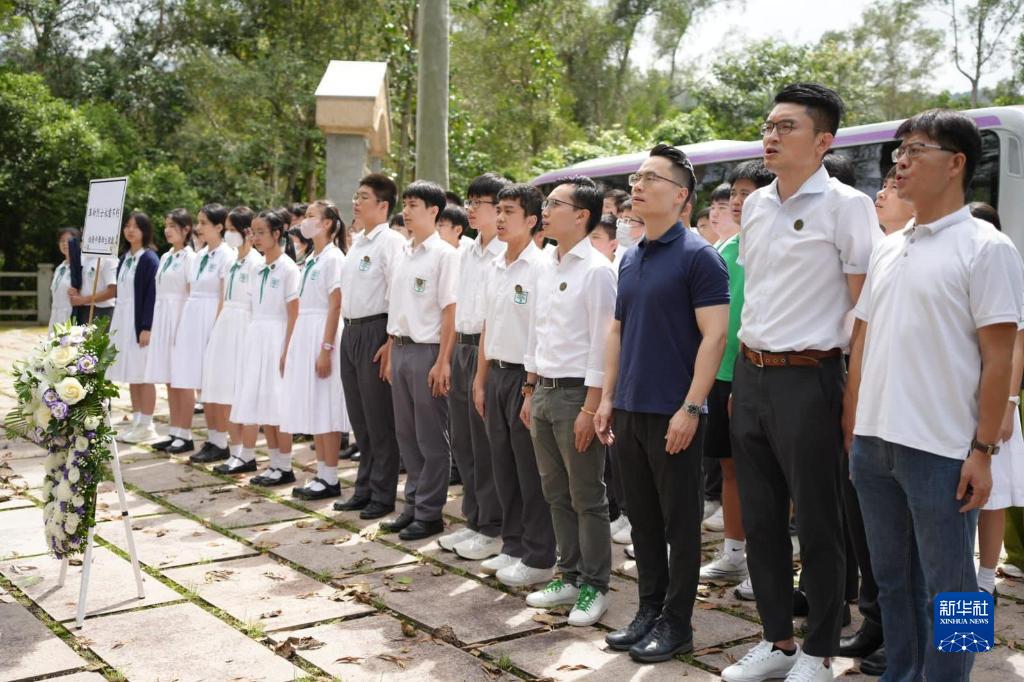 9月17日,香港师生在乌蛟腾抗日英烈纪念碑前默哀。新华社发