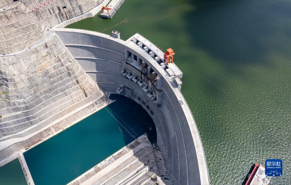 这是9月18日拍摄的白鹤滩水电站大坝一景(无人机照片)。