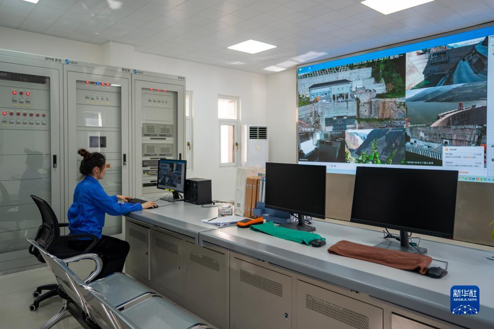 9月18日,一名工作人员在白鹤滩水电站下游集鱼站内工作。