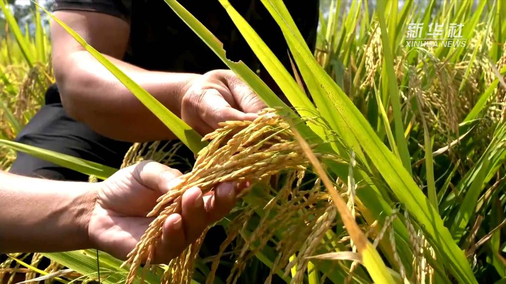 眼下,正值秋收时节,河南省南阳市桐柏县10万亩生态水稻喜获丰收。稻田里谷物金黄,簇簇颗粒饱满的稻穗压弯了稻秆,农户们在田间忙着收获一年中最美的“丰”景。