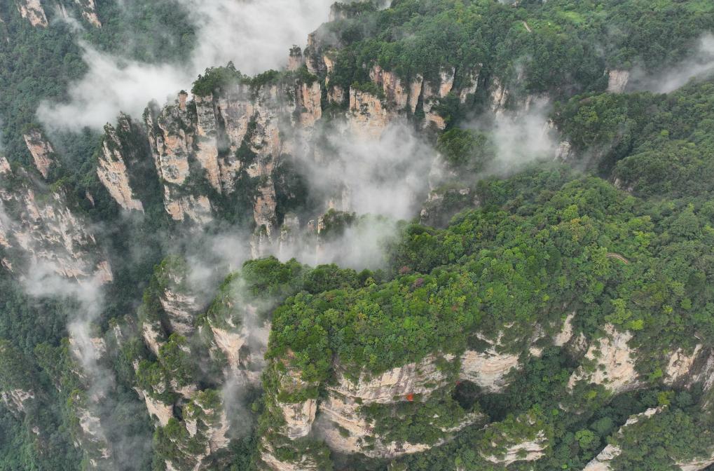 图为9月13日拍摄的张家界国家森林公园天子山美景(无人机照片)。(吴勇兵 摄)