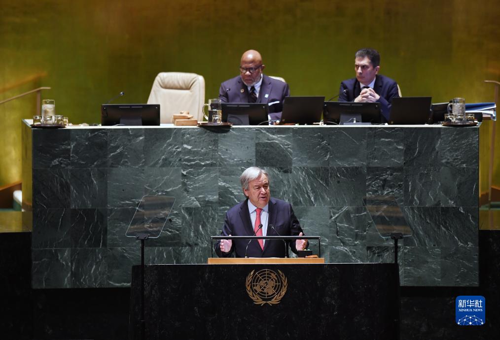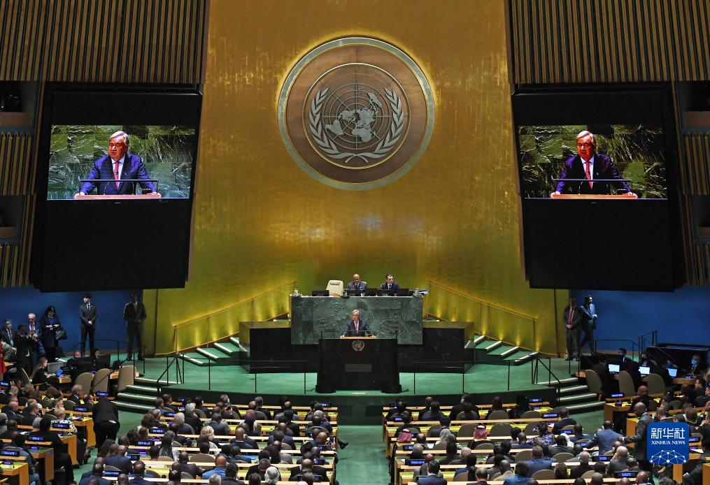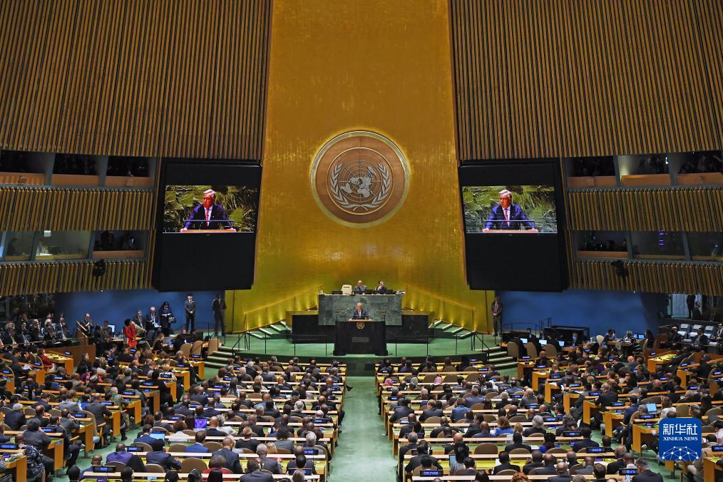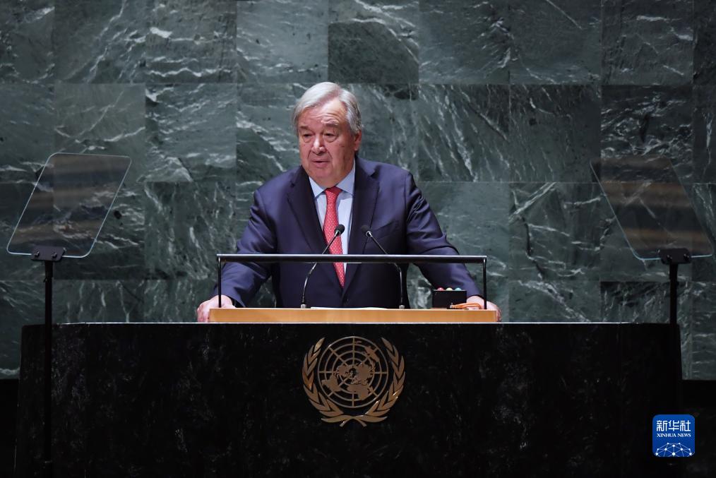 9月19日,在位于纽约的联合国总部,联合国秘书长古特雷斯在第78届联合国大会一般性辩论开幕式上讲话。新华社记者李睿摄