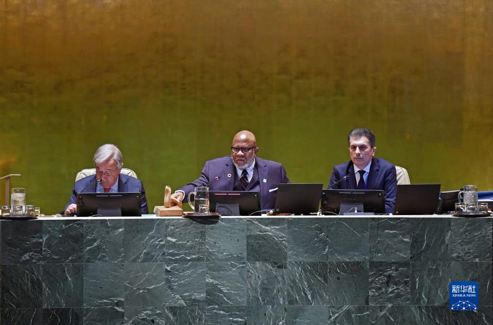 9月19日,在位于纽约的联合国总部,第78届联大主席弗朗西斯(中)宣布联合国大会一般性辩论开幕。新华社记者李睿摄