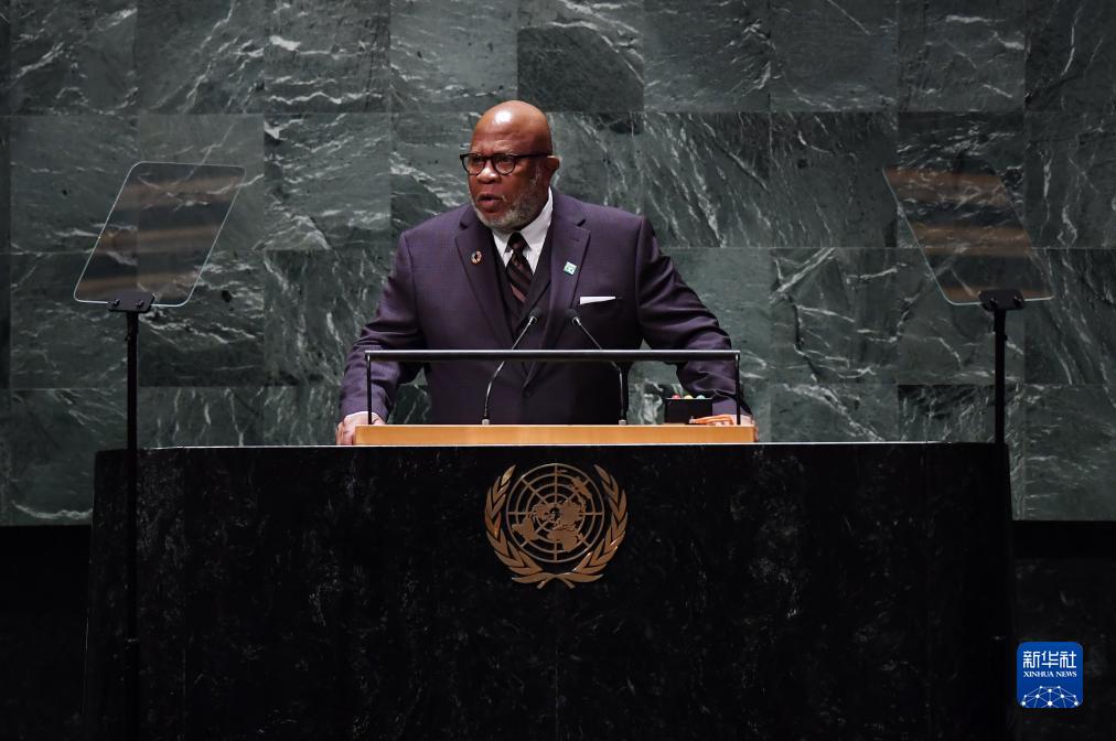 9月19日,在位于纽约的联合国总部,第78届联大主席弗朗西斯在联合国大会一般性辩论开幕式上讲话。新华社记者李睿摄
