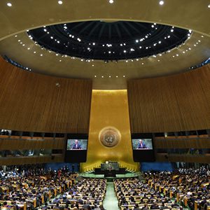 联合国大会是联合国主要的审议、监督和审查机构,由联合国全体会员国共同组成。大会于每年9月至12月举行常会。常会通常分两个阶段,前段为一般性辩论阶段,后段为大会审议列入议程的各项议题阶段。