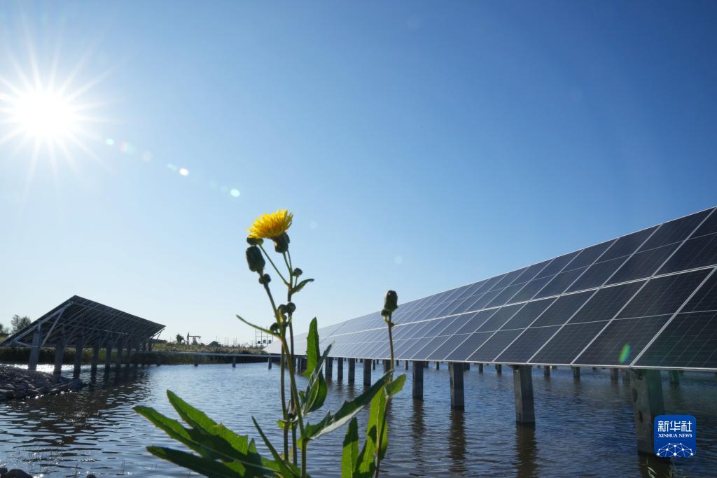 这是9月19日拍摄的大庆油田星火水面光伏电站一景。