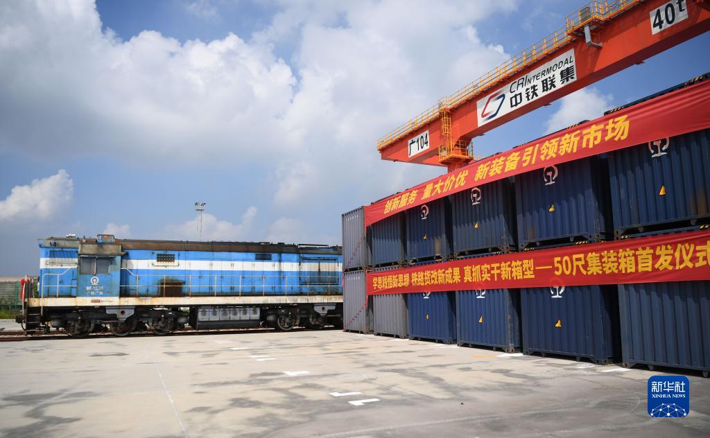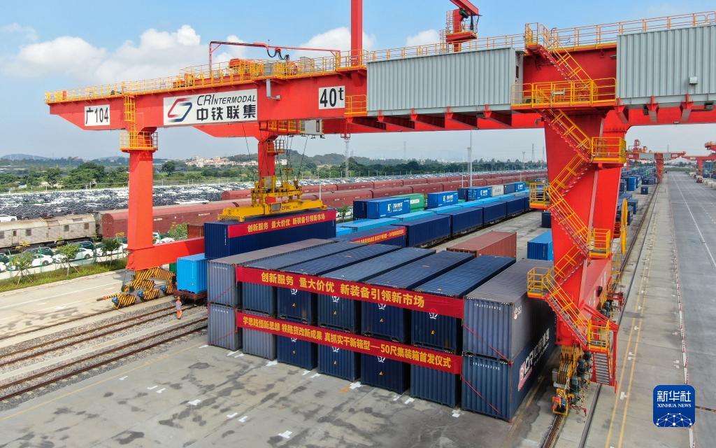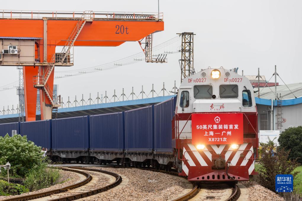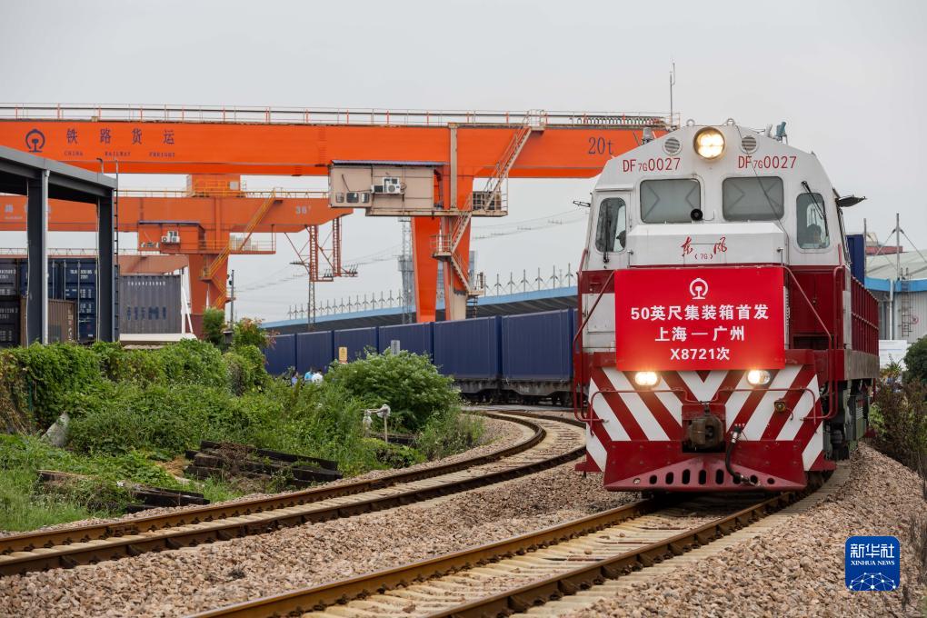 多联快车装载了我国铁路创新设计的50英尺36吨通用内陆箱,该集装箱较40英尺通用箱容量提升了约50%,箱体最大载重量相比提升了16%。自9月20日起,铁路部门开行多趟“50英尺集装箱”铁路多联快车,分别为:广州国际港开往长沙北站(往返)、上海闵行站开往东莞常平站(往返)、昆明王家营西站开往肇庆站(往返)。