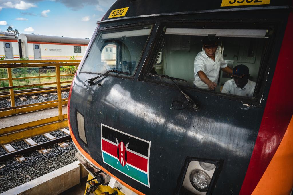 5月23日,在肯尼亚首都内罗毕,中国火车驾驶员蒋立平(左)与肯尼亚学员一道检查蒙内铁路机车。蒙内铁路由中国企业承建,是中国和肯尼亚共建“一带一路”的旗舰项目,2017年5月31日建成通车。(新华社记者王冠森摄)