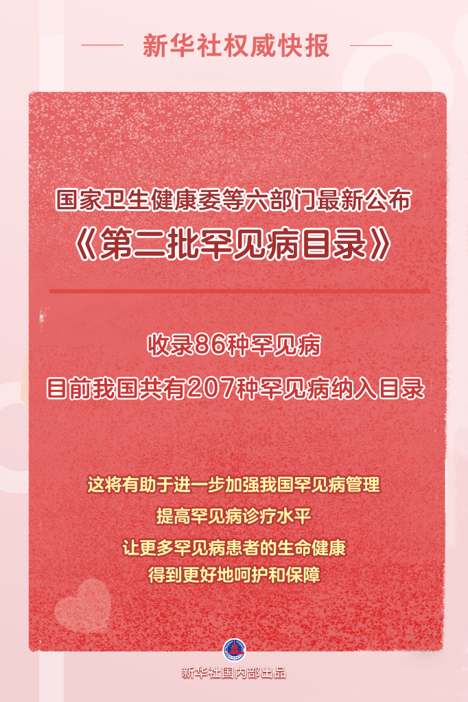 国家卫生健康委等6部门联合制定了《第二批罕见病目录》