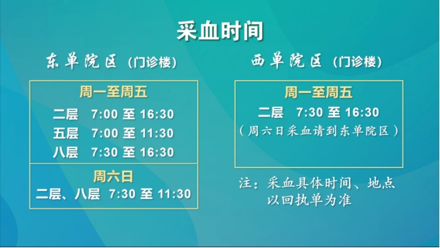 (3)如您错过呼叫但仍在预约采血时间段内,请您到所在区域的电视显示屏查看采血窗口信息,和导医说明情况,可重新呼叫。