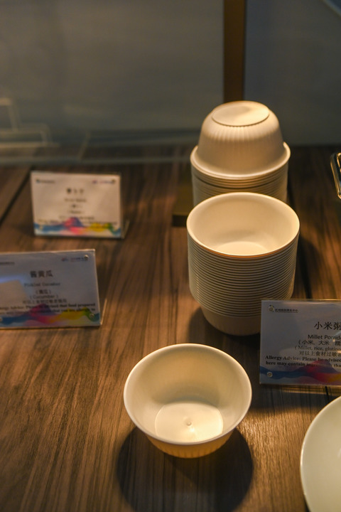 这是主媒体中心媒体记者餐厅内使用的可降解环保餐具(9月1日摄)。新华社记者 徐昱 摄
