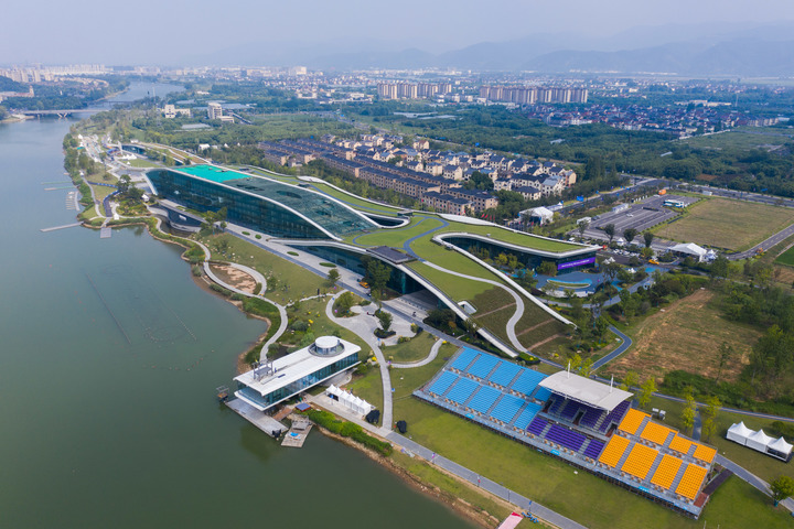 8月24日,空中俯瞰杭州富阳水上运动中心(无人机照片)。新华社记者 徐昱 摄