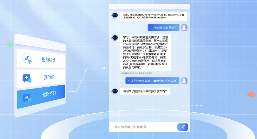 在辅助诊疗方面,灵医大模型可实现通过多轮对话了解病人病情,实时辅助医生确诊疾病,推荐治疗方案,提升就诊全流程的效率和体验,并成为患者的24小时“健康管家”,提供智能客服服务。此外,灵医大模型还能为药企提供多项赋能,包括专业培训、医药信息支持等等。