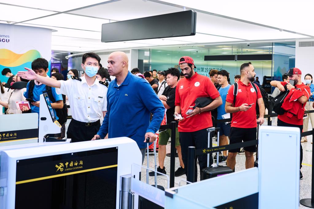 9月19日,杭州亚运会阿联酋体育代表团运动员正通过杭州海关亚运专用通道入境。