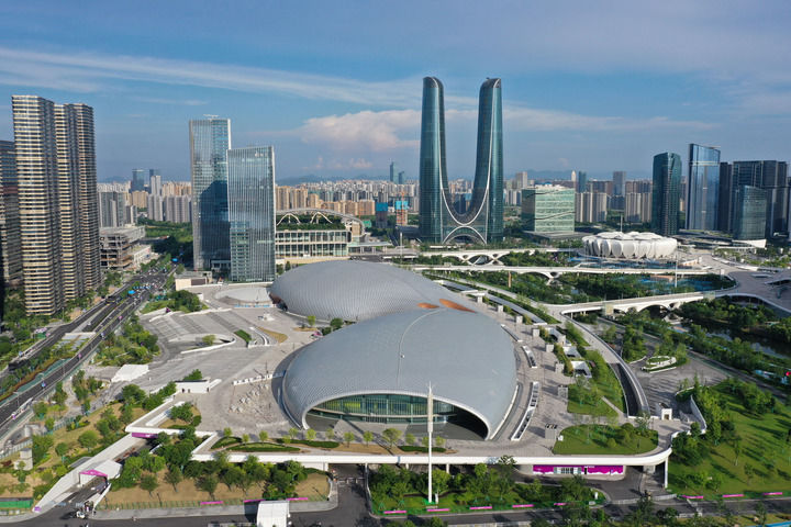 这是2023年6月28日拍摄的杭州奥体中心游泳馆、体育馆(无人机照片)新华社记者 黄宗治 摄