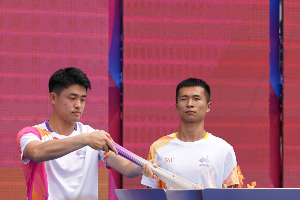 作为20日的最后一棒火炬手,首位夺得ATP(男子职业网球选手协会)巡回赛单打冠军的中国大陆选手吴易昺登上舞台展示火炬并点燃火种盆,见证了火炬传递活动的圆满成功。作为本次亚运会火炬手中的青年一代,吴易昺向年轻人们发出号召:“我们中国这一代年轻人肩负着很大的使命,但是我们不要给自己压力,年轻一代就该有梦去追、去闯,多走出去看看世界。中国的年轻人现在就像一团‘火苗’,我们需要往这团火里面加一些木材,让自己‘燃’起来。”