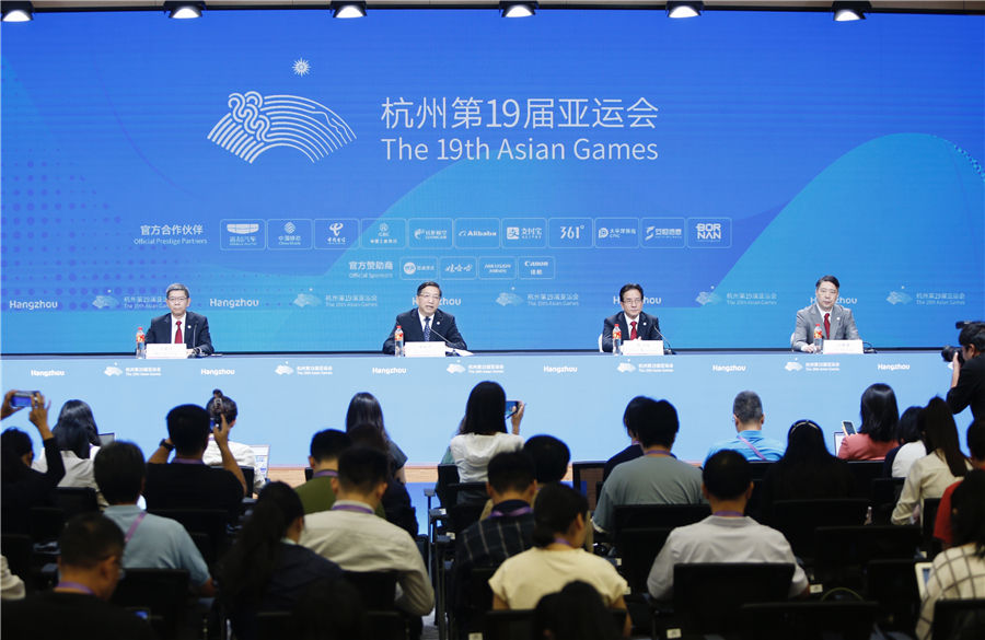 杭州亚运会(亚残运会)主新闻发言人亮相暨整体筹备情况新闻发布会现场。(图片来自杭州亚运会官网)