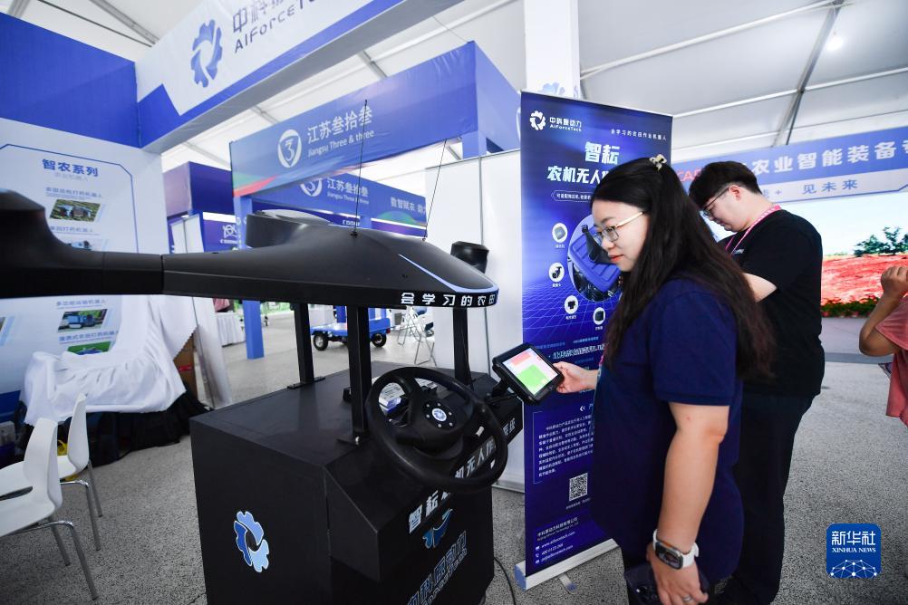 9月19日,参观者在农高会参观一款智慧农业设备。