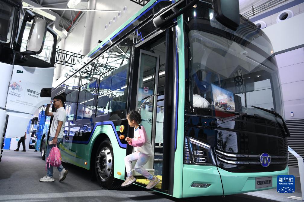 这是2023世界制造业大会上展出的氢燃料城市客车(9月21日摄)。