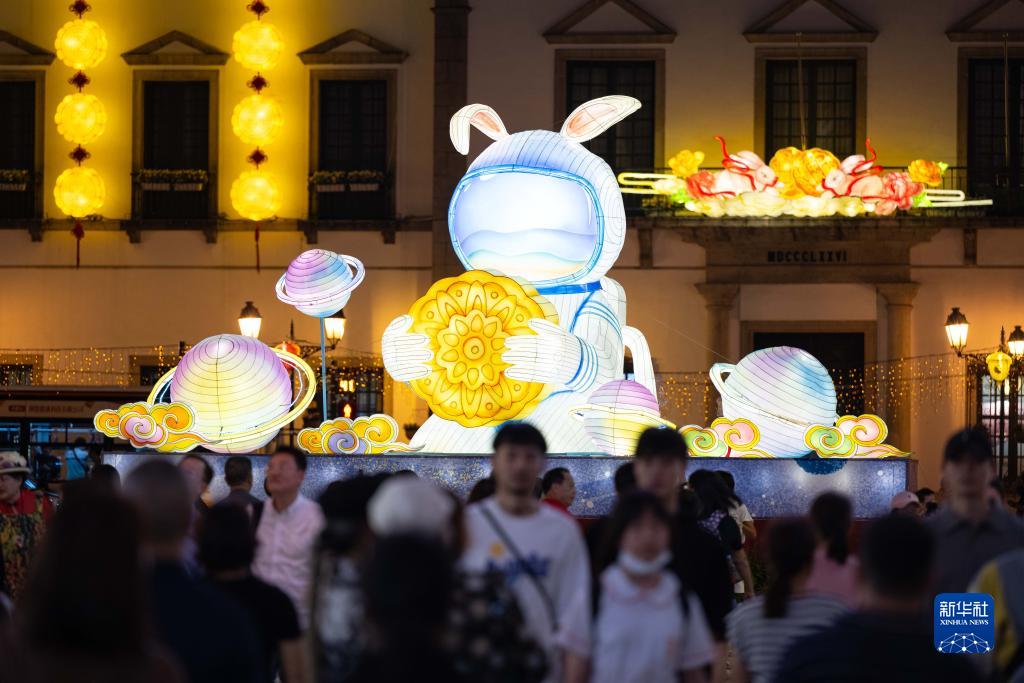 中秋及国庆佳节将至,澳门以“中秋喜相逢 国庆共欢腾”为主题的花灯日前已点亮,佳节气氛浓厚。