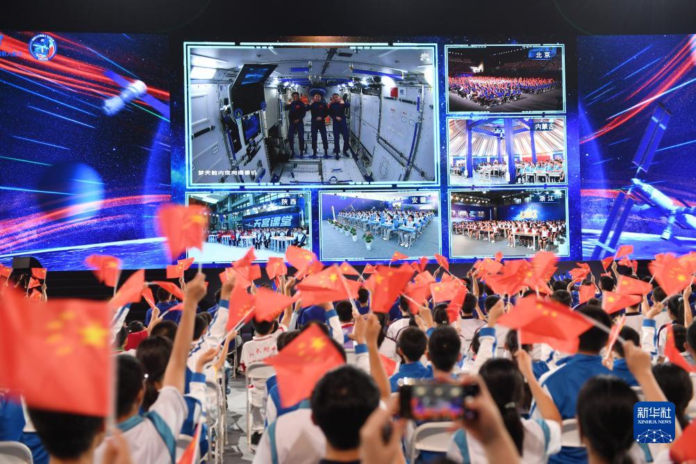 新华社北京9月21日电 9月21日下午,“天宫课堂”第四课在中国空间站开讲,新晋“太空教师”景海鹏、朱杨柱、桂海潮为广大青少年带来一场精彩的太空科普课,这是中国航天员首次在梦天实验舱内进行授课。