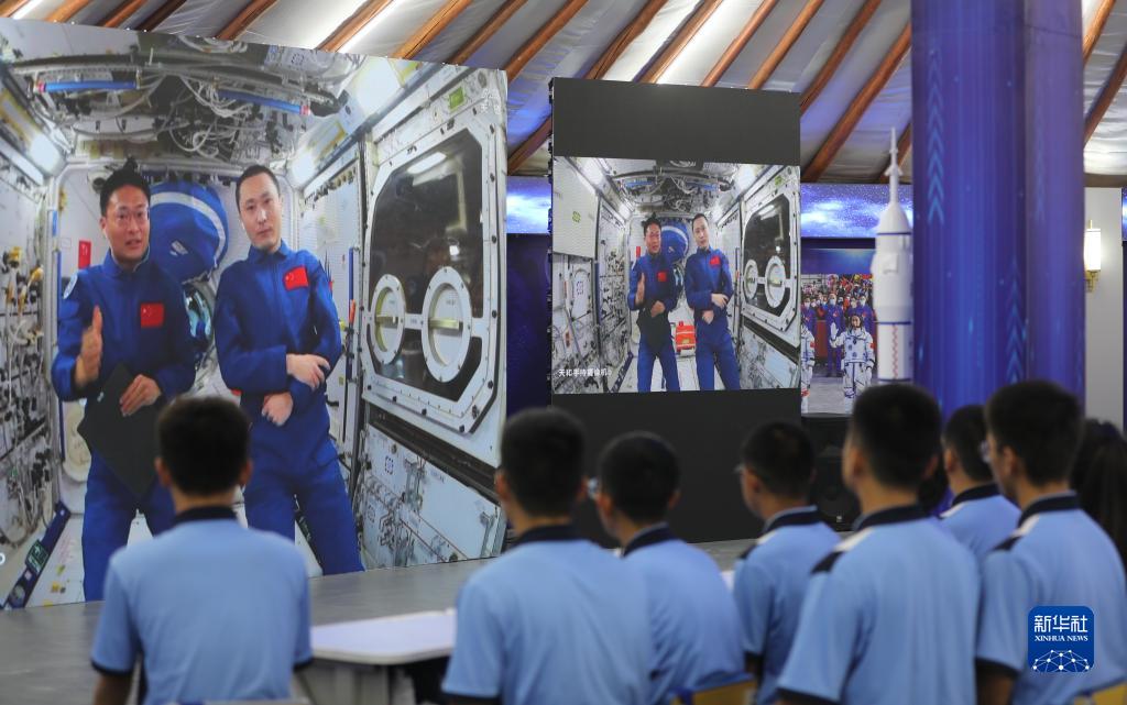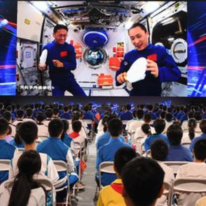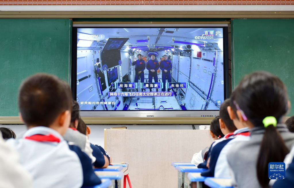 在约48分钟的授课中,神舟十六号航天员景海鹏、朱杨柱、桂海潮生动展示介绍了空间站梦天实验舱工作生活场景,演示了球形火焰实验、奇妙“乒乓球”实验、动量守恒实验以及又见陀螺实验,并生动讲解了实验背后的科学原理。授课期间,航天员通过视频通话形式与地面课堂师生进行了实时互动交流。