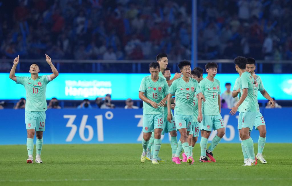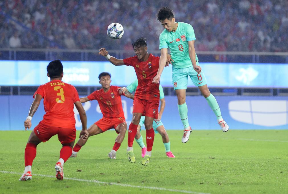 新华社杭州9月21日电(记者陈地、卢羡婷)在21日进行的杭州亚运会男足比赛中,中国队以4:0完胜缅甸队,收获小组赛两连胜的同时也提前出线。
