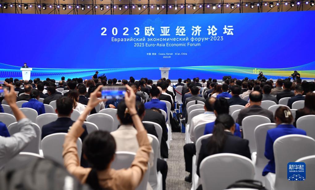 当日,2023欧亚经济论坛在陕西西安开幕。2023欧亚经济论坛经贸合作博览会暨中国(陕西)进出口商品展同期举办。