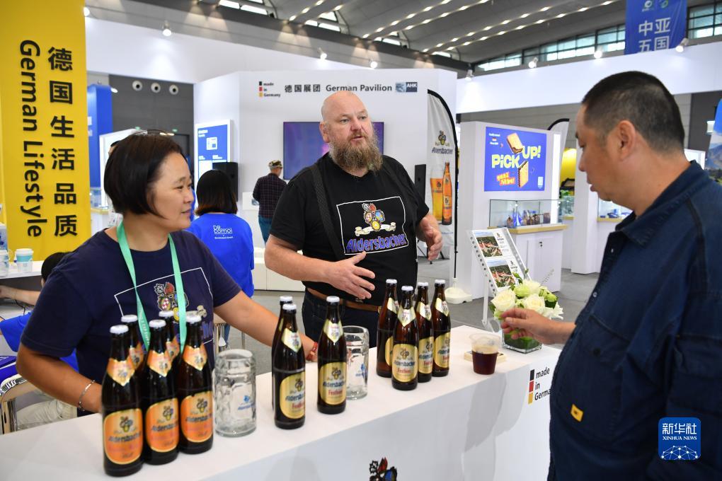 9月22日,观众在2023欧亚经济论坛经贸合作博览会暨中国(陕西)进出口商品展上品尝一款进口啤酒。
