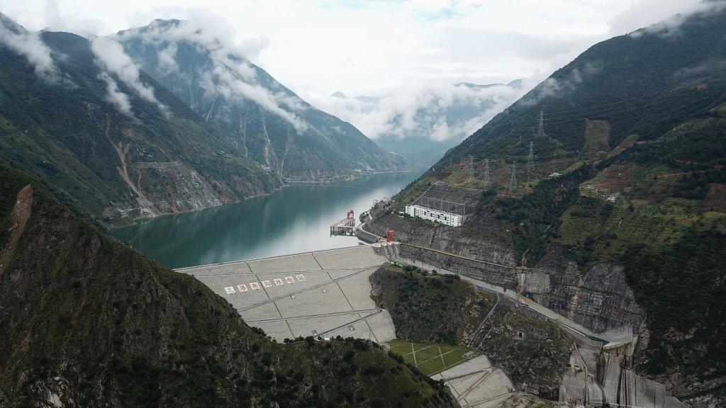↑2023年6月22日拍摄的雅砻江两河口水电站。雅砻江两河口水电站是我国海拔最高的百万千瓦级水电站,总装机300万千瓦,电站库容108亿立方米。